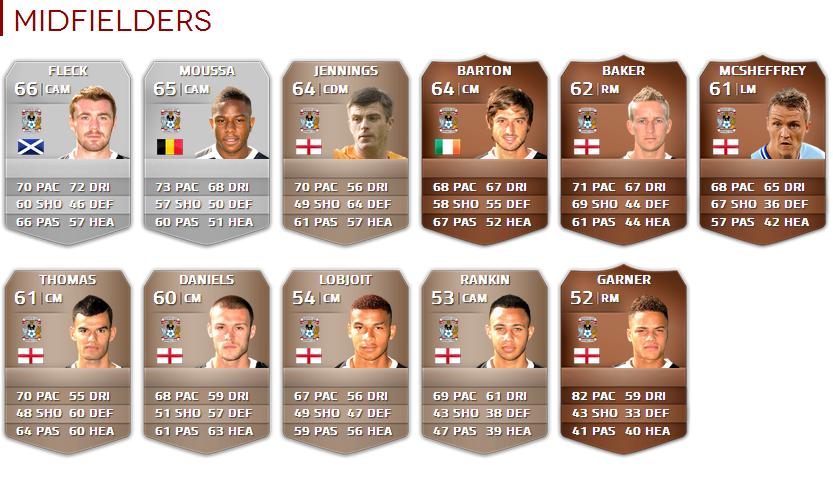FIFA 14 is just a few weeks away & the demo being released on Xbox 360 and PS3 today, now the Coventry City lineup and player ratings can be viewed.
